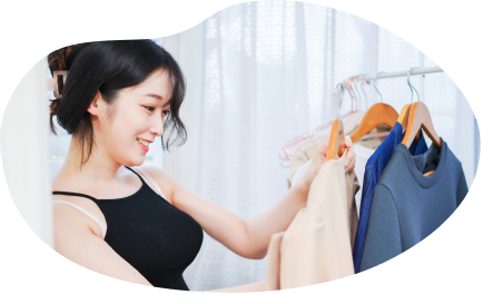 店舗で自由にご試着いただき、気に入った商品が見つかったら決済のうえお持ち帰りいただけます。