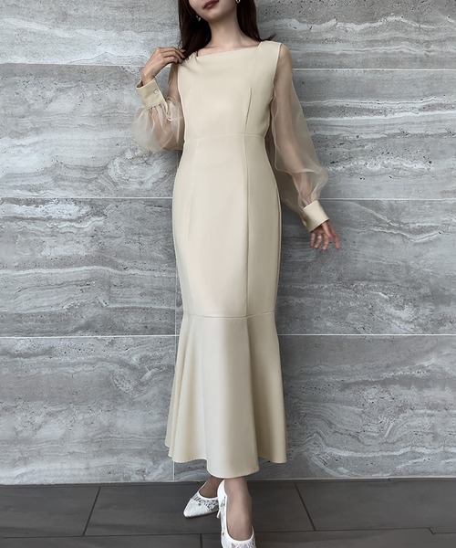 さらに、トップス部分にレースやドレープを使ったデザインなら、視線を上へ集めて全体をすっきり見せる効果も。タイトすぎずカジュアルに見えない絶妙なラインを選べば、体型を問わず美しく着こなせます。